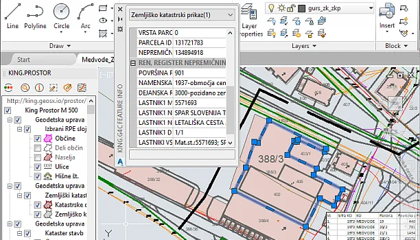 The data is configured on King.Prostor cloud servers and GIS for CAD maps are prepared. With King.Prostor CAD users can connect to G4C map, select area of interest