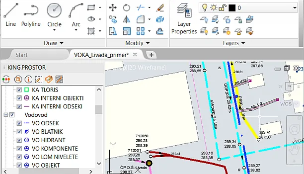 VO-KA sample dwg displaying water supply and drainageKing.Prostor